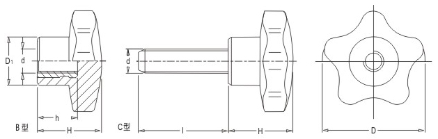 JS.102007 五星把手 顏色:亮光黑 材質(zhì):酚醛樹脂(膠木) 用途:適用于各類機(jī)械裝備、五金工具、舞臺燈光設(shè)備等行業(yè) 特性:光澤感強(qiáng)、外形美觀、機(jī)械強(qiáng)度高、堅固耐用、標(biāo)準(zhǔn)化使用、安裝簡便。
