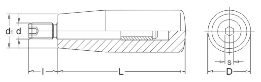 JS.103003 轉(zhuǎn)動手柄 顏色:亮光黑或鍍鉻 材質(zhì):酚醛樹脂(膠木)或碳鋼 用途:適用于各類機械上緊固位置的靈活調(diào)節(jié) 特性:光澤感強、外形美觀、機械強度高、堅固耐用、標準化使用、安裝簡便